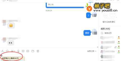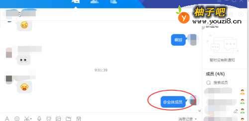 4当选择@全体成员时,发送到聊天框里面,群内的成员都会有提示信息,群里有人@你。