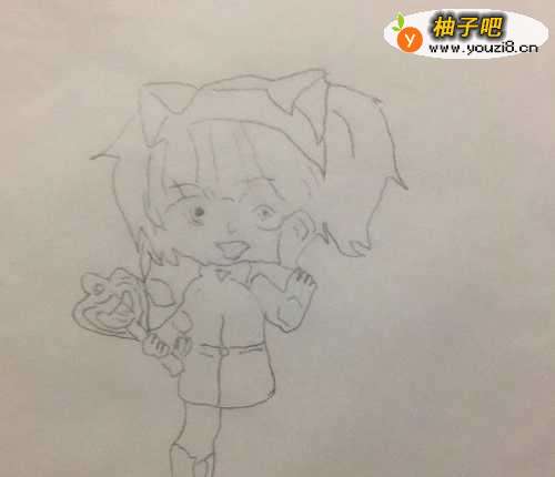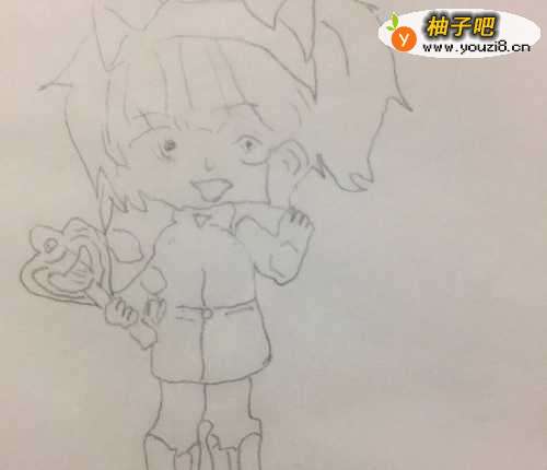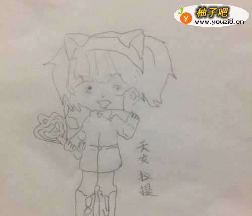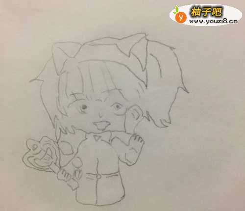 3接着画出天女的双手和手中的魔法杖,如下图所示。