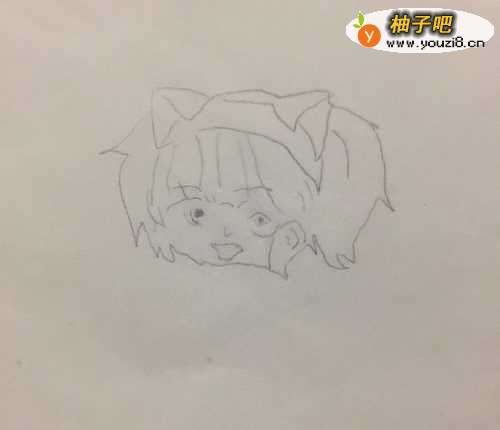 2然后画出天女的眼睛、鼻子和嘴巴,如下图所示。