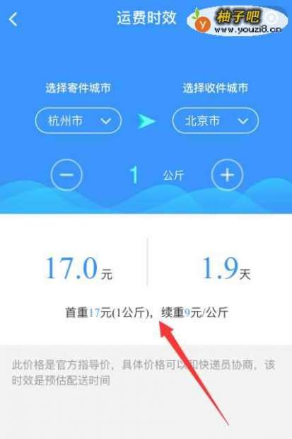 5输入你的寄收件地址,如下图所示。选择好你的物品总量,点击下方的查询即可。