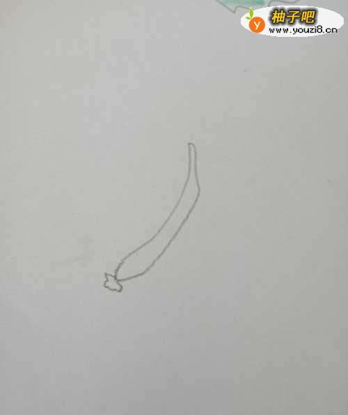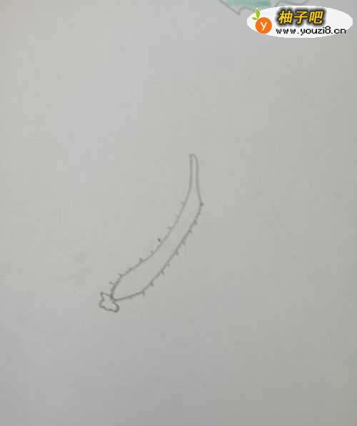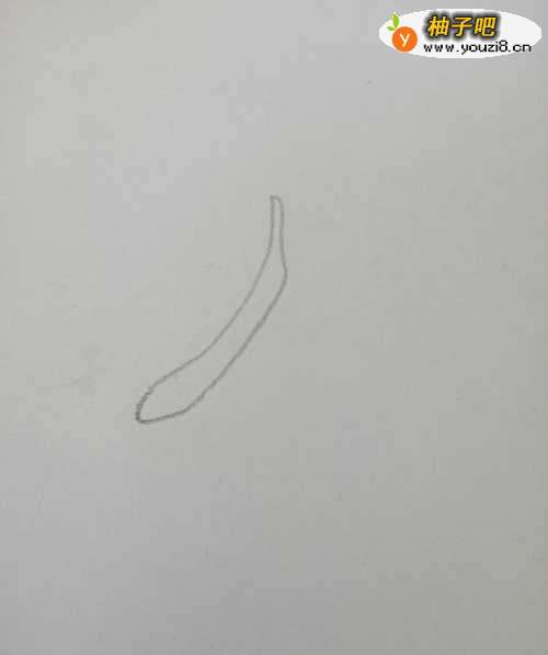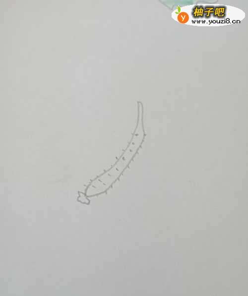 首先有线条勾勒出黄瓜的轮廓,注意有一头是比较细的。