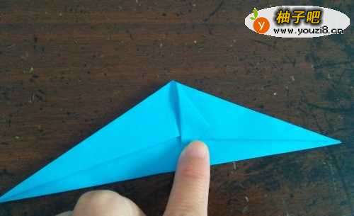 3我们把两边同时向内折,把中间的角捏出来,并把角斜着向一侧的方向对折。