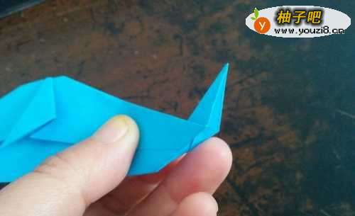 6把尾巴部分向上折一点,最后画上大大的眼睛就完成了。
