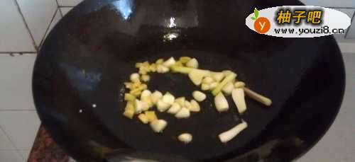 5热锅冷油,把葱姜蒜放入煸炒出香味。