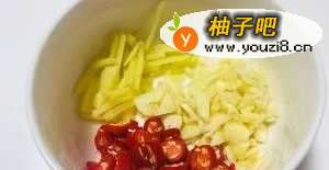 3姜丝,蒜末,小段小米辣
