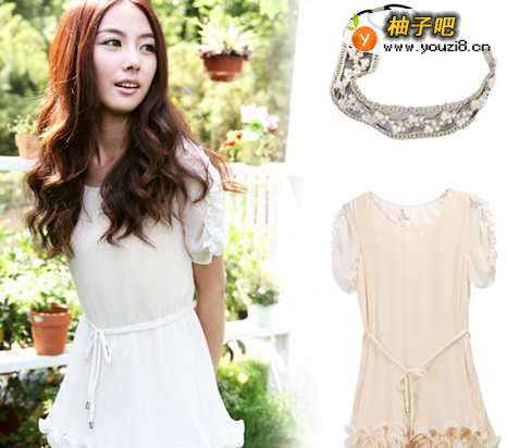 夏天雪纺连衣裙尽显淑女风味 特色雪纺连衣裙,搭配缩腰腰带,很淑女,很时尚缩腰皮带头十分有特殊特意设计韩国风格,让你美美过一夏!