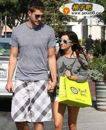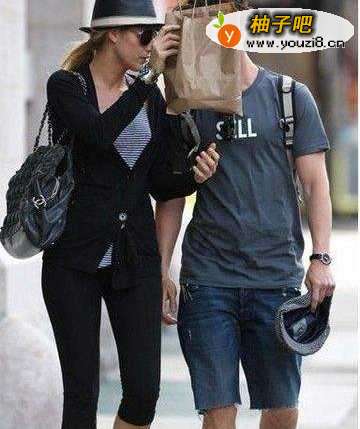 4 情侣出游服装搭配:如果你和你的男友身高差距比较大,那么可以学习阿什利那样,和男友穿同色系的衣服,还有同款的鞋子,一眼就能看出你们是一对。