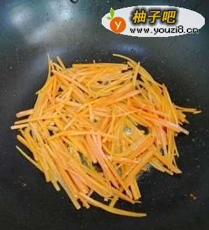 5起锅烧油 下入红萝卜翻炒至变色 大约1分钟 这个比较难熟