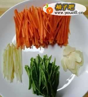 3红萝卜去皮 青椒 姜 切丝