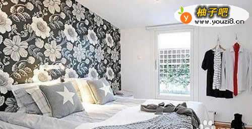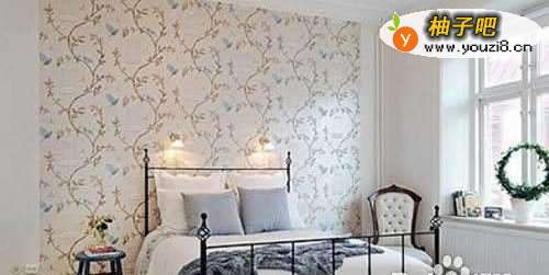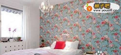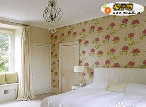房子装修卧室内的白色装束用美丽的月季花壁纸改变苍白的面容,由于白色本身就较为百搭,配上花色壁纸的白色卧室,宛如少女跨入了花季。