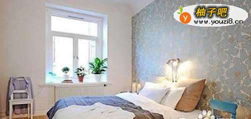 3壁纸选用了较为挑眼的蓝色,而壁纸上的叶片暗纹凸显了精致,即便是再简陋的卧室也能被一张壁纸带起一室美丽。