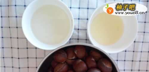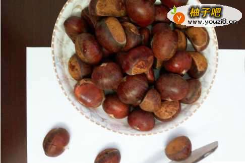 2沥干水分。板栗洗净晾干,把每一个板栗都砍一刀,记住,砍一刀不是砍断,砍到肉即可,小心手。