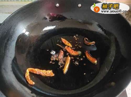 3起锅烧油放花椒和干辣椒,爆香后捞出倒掉,再放入葱姜蒜爆香