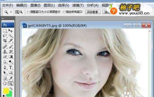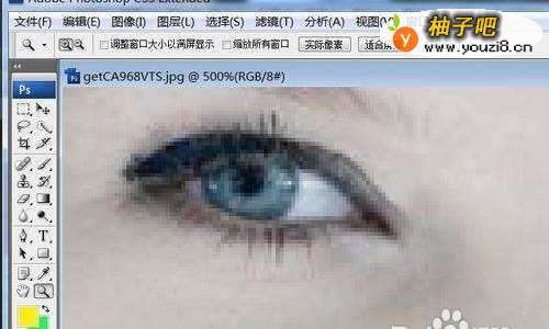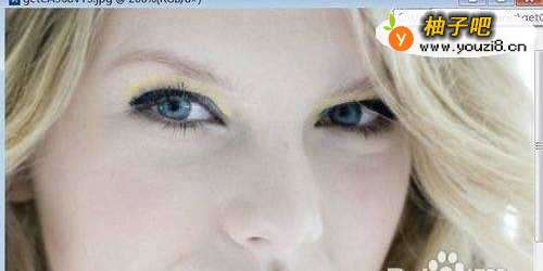 2首先我们用PS给美女加上眼影,利用快捷键“Z键”,切换到缩放工具(备注利用alt键可以在放大缩小工具间切换)。在“放大”状态下,我们按住鼠标左键,拖出一个矩形框(这里用到的缩放工具中,局部缩放的技巧,详情请参看中艺教育PS教程:缩放工具的使用)