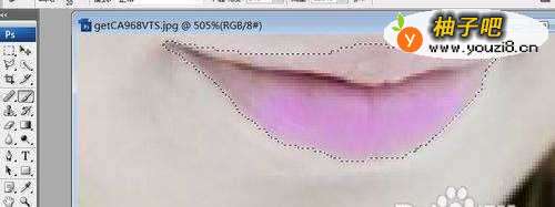 4利用快捷键L键,切换到套索工具,shift+L切换到多边套索工具,将嘴唇的轮廓选出来,按照画眼影的方法,为美女画出唇彩。
