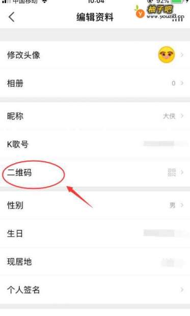 4打开进入到编辑资料页面,在页面里打开二维码,如下图
