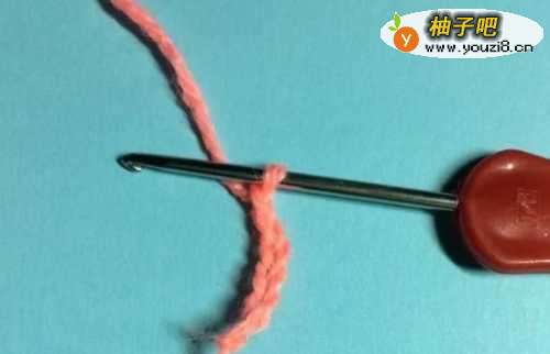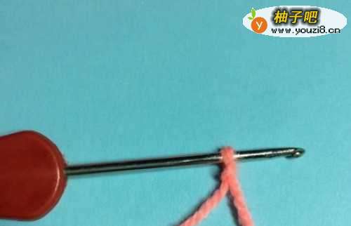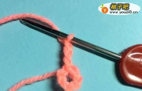 准备好钩小花的毛线和钩针。用毛线打个活套套在钩针上。