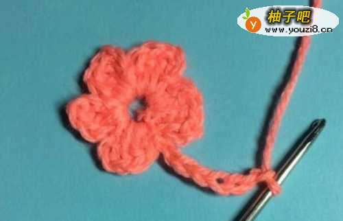 6接下来用同样的方法钩出另外2片花瓣。这样一朵小花就钩织好了。