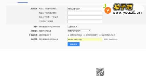 3接下来,在新的窗口中第一行”包含以下全部的关键词“后的输入框中输入我们要搜索的内容,然后在最后一行”站内搜索:限定要搜索指定的网站“后的输入框中输入刚才我们记下的网址,如图,点击“高级搜索”。