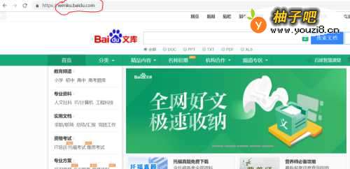 首先,记下你需要搜索网站的网址,网址显示在网页标题下方,通常是"http://"或者"https://"开头,这里我们需要的网站是从两个斜杠后开始的。如图,百度文库的网址就是“wenku.baidu.com"