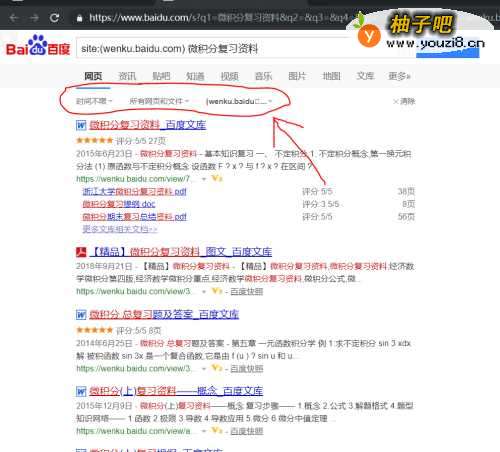 5当然,我们可以在图中红色箭头所指的地方详细的规定网页信息的发布时间,或者搜索指定格式的内容(如:pdf、word等)。当然,点击后面的网址可以更改我们所搜索的网站。