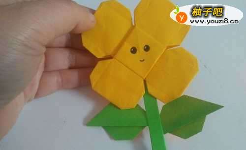 6再去另一张彩纸,从中间裁开,如图一。先把长的卷成条形。再把小的纸对角线对折,再折一下,如图二。打开后我们把它们用胶水固定在一起就完成了。
