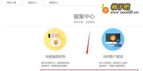 3点击后直达如下窗口,这时会看到如下页面提示:我被骗取财物、我的帐户被盗两个按钮,可根据所需下方的“我要报案”按钮进入举报窗口。