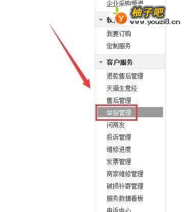 打开并登陆帐号,登陆成功后这时在左侧找到并点击:客户服务--举报管理,点击后进入另一个管理页面中。