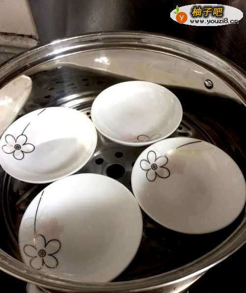 2凉水锅里烧开,碟子放在锅里,待水烧开;