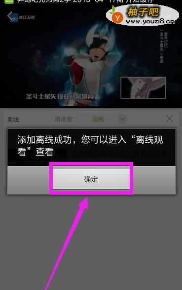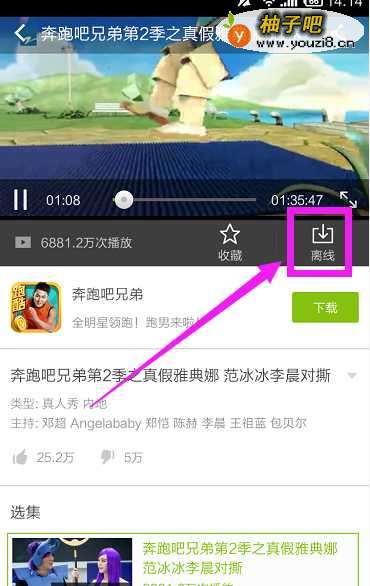 4接着会见到了视频开始了播放的状态,并且小伙伴们在那个小小的播放器的右下端会见到一个白色箭头的”离线“按钮,点一下那个”离线“。