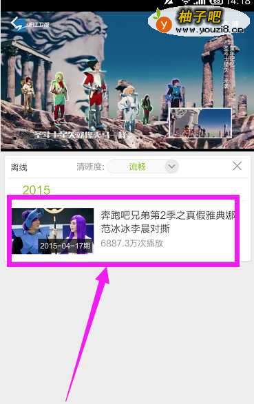 6确定了清晰度后,再在下面的视频里点一下准备要下载的那个视频。在这里,说明一下,小编想要看的娱乐节目,才刚出,当然只有一个视频。如果您看的是已经更新了很多的电视剧的话,就可能会有很多剧集啦,选其中要下载的剧集就好啦。