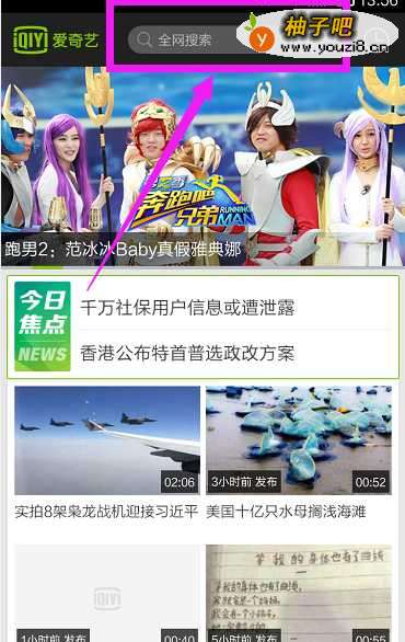 2小伙伴们在爱奇艺界面的最上方中间的搜索栏轻点一下,就会跳到新的页面,接着输入特定的电视剧名字或者什么电影之类的来搜索。如果在下面的“热门搜索”里面刚好有自己想要看的视频,就直接点一下那个名字即可,比如小编点一下那个“奔跑吧兄弟第2季”。
