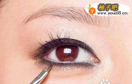 画眼妆了,这是挺重要的一条,画眼妆的时候可以弄高光妆容,这样可以小脸哦,画眼妆的时候首先刷眉毛,然后再画眉。