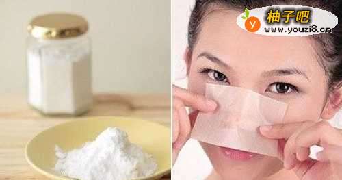 或将水中兑入少量小苏打,用化妆棉沾湿后,贴在鼻子上,可以去黑头。