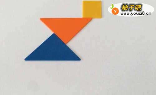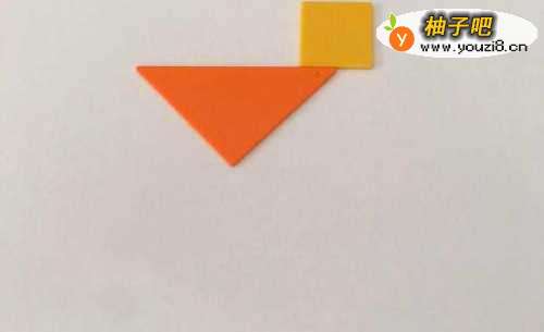2挨着正方形下侧边摆放一块大三角形,大三角形上侧长边右部与正方形下侧边左部相接。