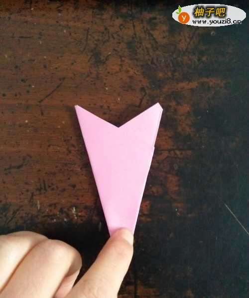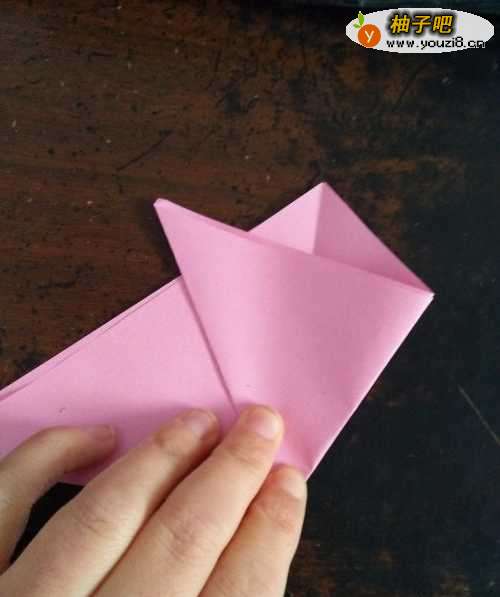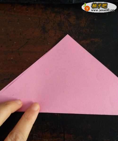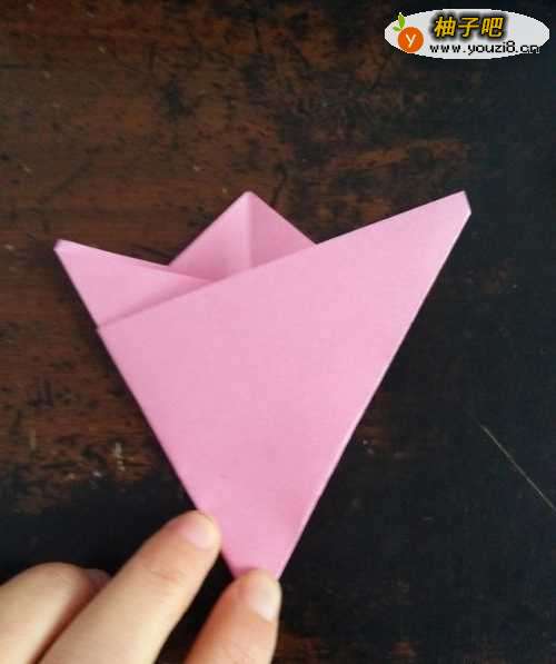 3我们再把三角形的上半部分分成三等分,先把右边的角折向左边如图。