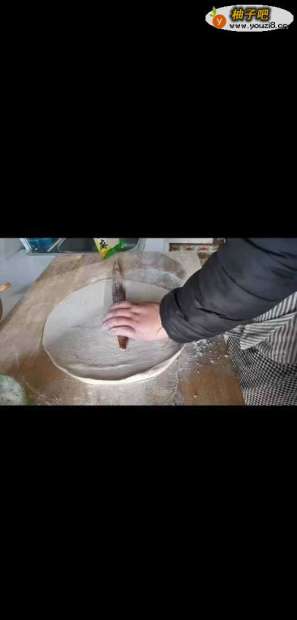 2把面团擀成薄面饼,切成面条