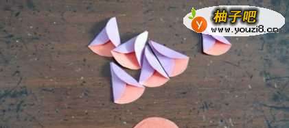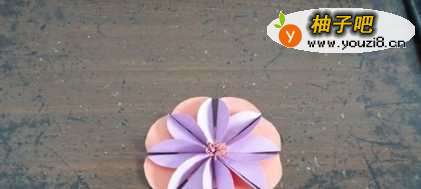 4把一张圆形上面涂上胶水,我们把花瓣粘在上面,不够的话,我们可以再剪两个圆形