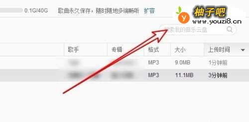 6我们我们上传到云盘中的音乐比较多,我们可以通过云盘右上角的“搜索框”来查找自己需要的音乐。