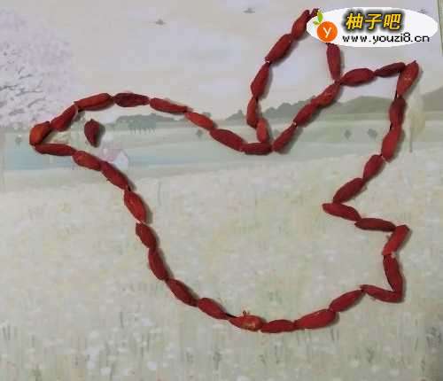 4第四步:将枸杞涂上固体胶水然后粘到已画好的线条上拒牢面。