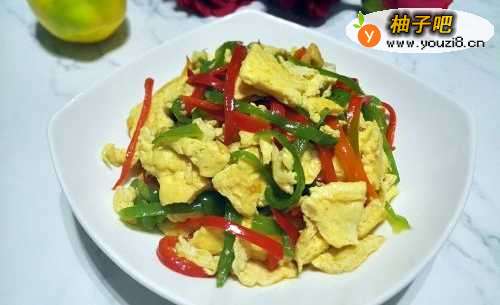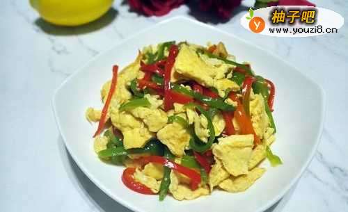 8鸭蛋炒辣椒就做好了。辣椒用的甜椒,一点儿也不辣。