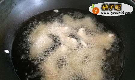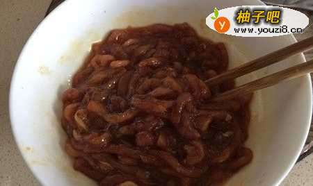 5可以把肉丝倒入面糊中,然后用筷子夹起一根肉丝,都挂上面糊,再迅速丢入热油锅里。