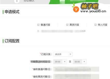 6选择申请模式,订阅配置。其中订阅配制包含订阅分类,问题推送时间段/日等内容,要填写完整。
