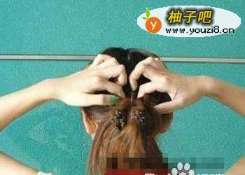 在头顶两侧分出头发