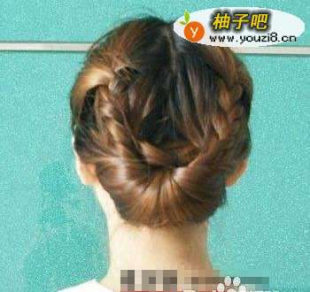 所有头发塞进洞里。俗称的鸟窝头新编了两个麻花,看起来很特别。