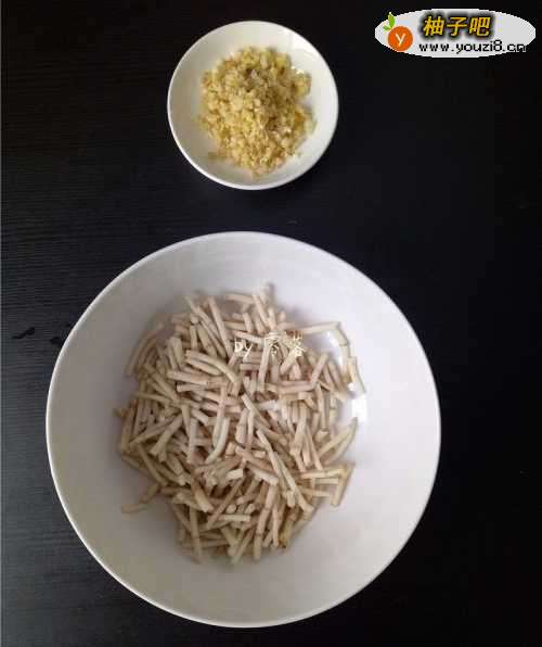 备好食材:鱼腥草掐成段,老姜大蒜洗净剁碎。