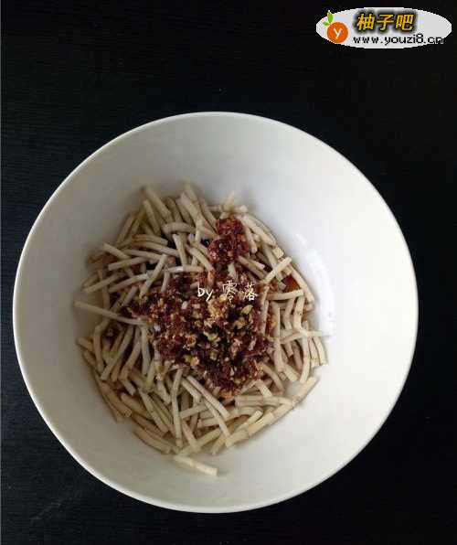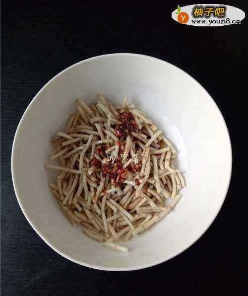 7鱼腥草腌制入味后,调入适量细砂糖,熟油辣子,花椒油;