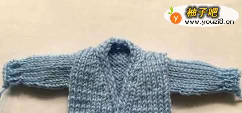 3然后开始编织身子,在正面织下针反面织上针,在前襟处的边,两边各4针继续织正反面都织上下针。