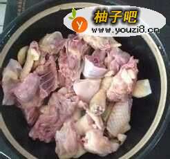 7把山药去皮,切段,待鸡肉煮至七成熟,放入山药