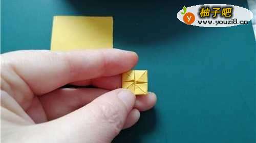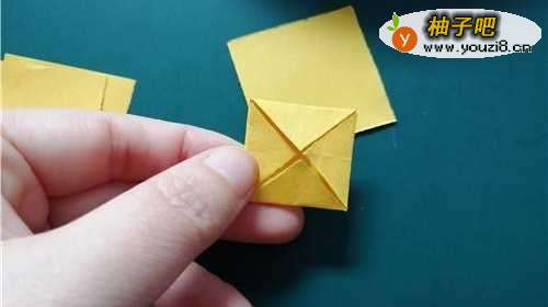 2再把四个角向内折,把彩纸翻到另一面,再把四个角向内折。